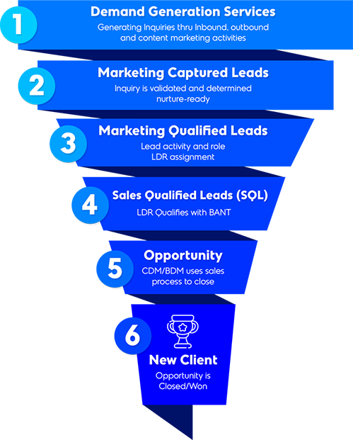 This is done through a series of inbound marketing activities (content marketing, SEO, social media) and outbound marketing (email, tele prospecting) that generate inquiries to fill the top of the demand funnel and gradually drive them as a sales opportunity.